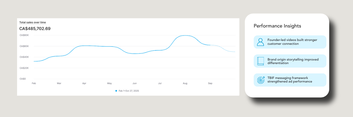 The results came fast. Within the first month of running founder-led video creative, the brand broke through its revenue ceiling, and hasn’t looked back since.